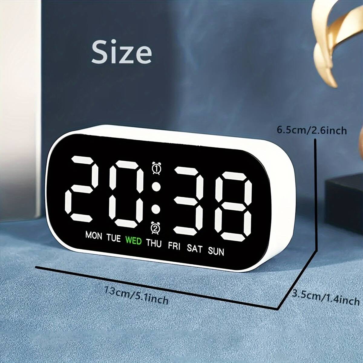 - デジタル時計 置き時計 おしゃれ 小型 ホワイト 白 13cm 大画面 目覚まし アラーム 明るさ調整 調光 大文字 気温 カレンダー 曜日 t5215