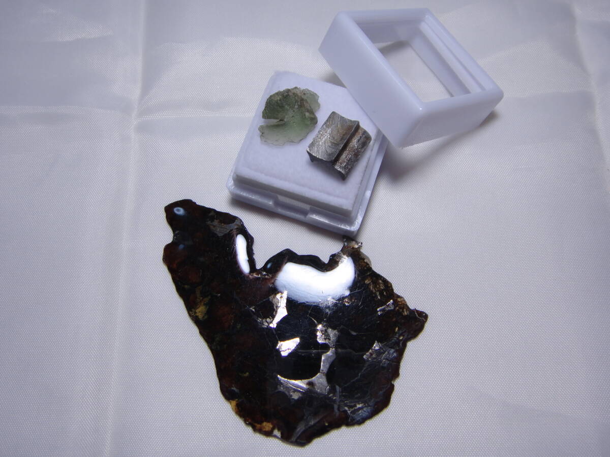 - 天然石 モルダバイト パラサイト ギベオン 天然ガラス 鉄隕石 石鉄隕石 隕石 標本3種セット Y520
