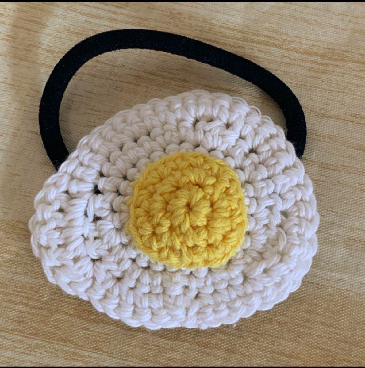 - 【d6】かぎ針 編みぐるみ ぷっくり 黄身 目玉焼き ヘアゴム