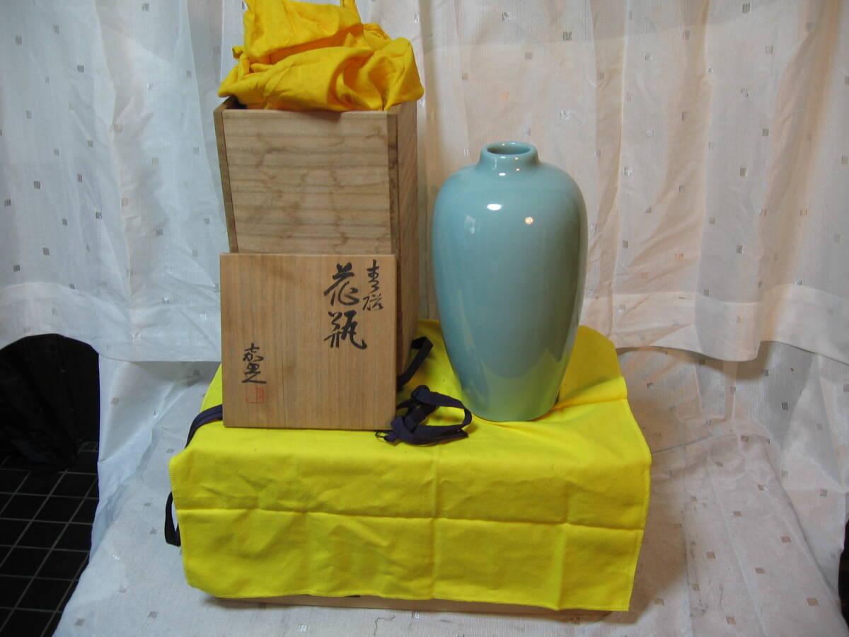 - 森野嘉光 造☆青磁花瓶☆京焼☆桐箱(共箱)☆美品