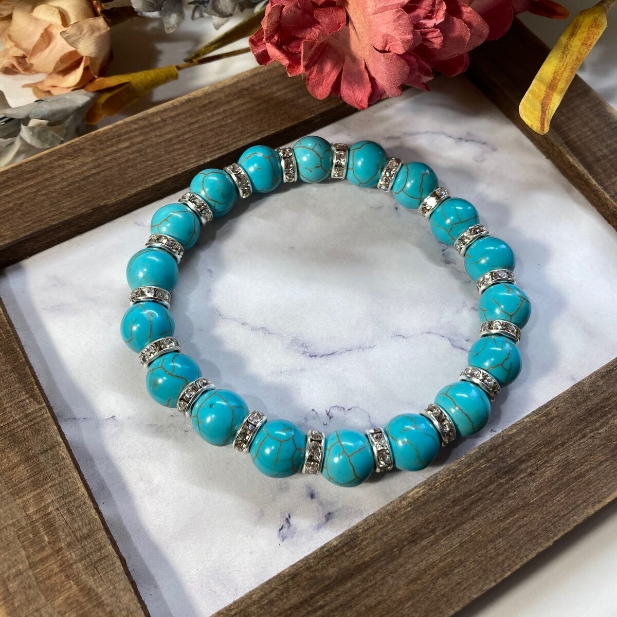 - ターコイズ パワーストーン ブレスレット 10mm (シルバー) 数珠ブレス メンズ・レディース 男性 女性 幸運 成功運 お守り #2★