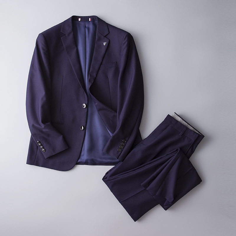 - 新入荷 高品質 無地 シングルスーツ メンズ 紳士 ビジネス セットアップスーツ ウエスト伸縮有り パンツ スーツセット/ネイビー