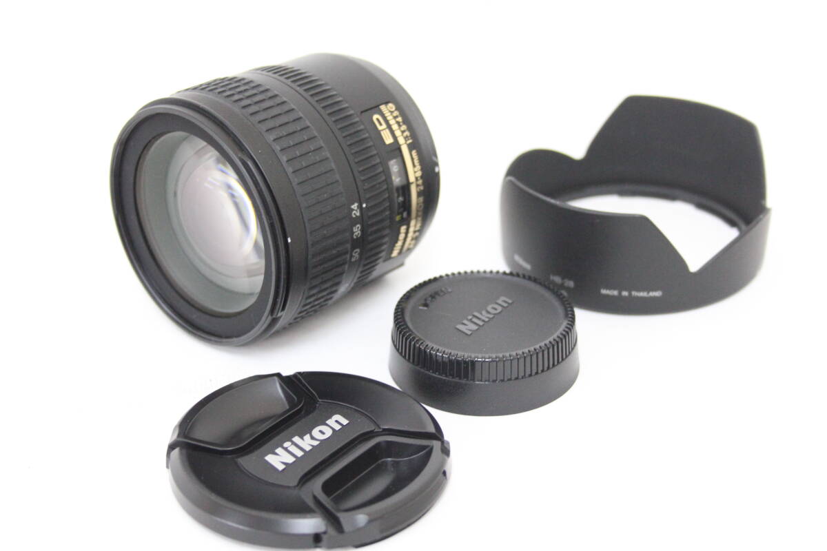 - 【美品 返品保証】 ニコン Nikon AF-S Nikkor 24-85mm F3.5-4.5 G フード 前後キャップ付き レンズ M4252