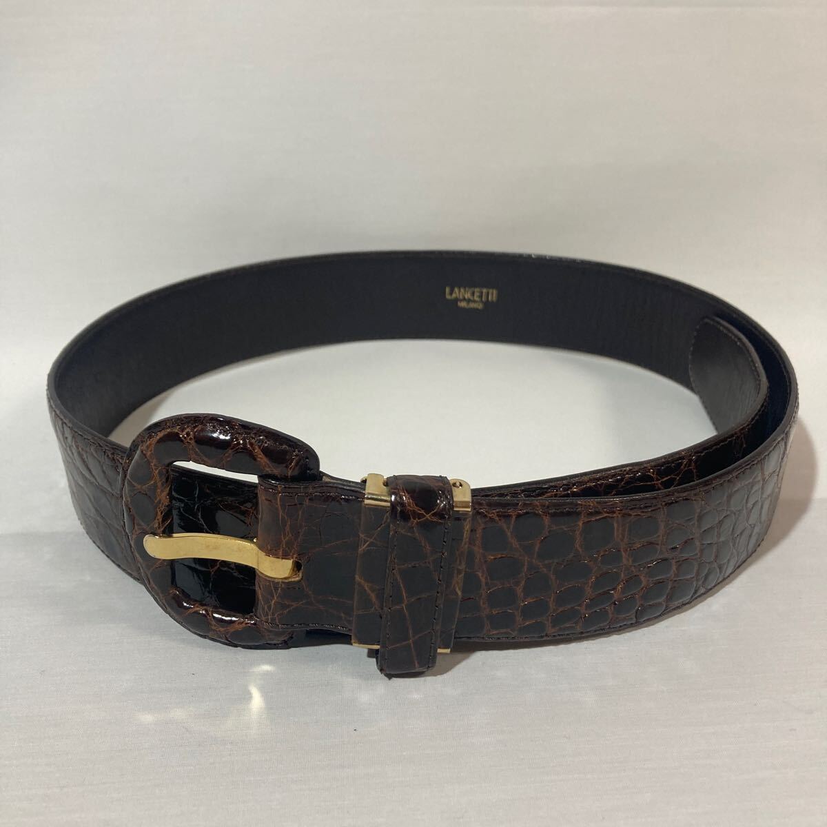 - LANCETTI クロコダイルベルト ウエスト77cm-82cm 幅39.5mm ブラウン ランチェッティ