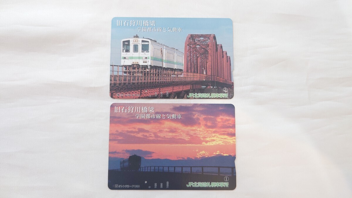 - ●JR北海道●旧石狩川橋梁 学園都市線と気動車1・2●記念オレンジカード1穴使用済み2枚一括