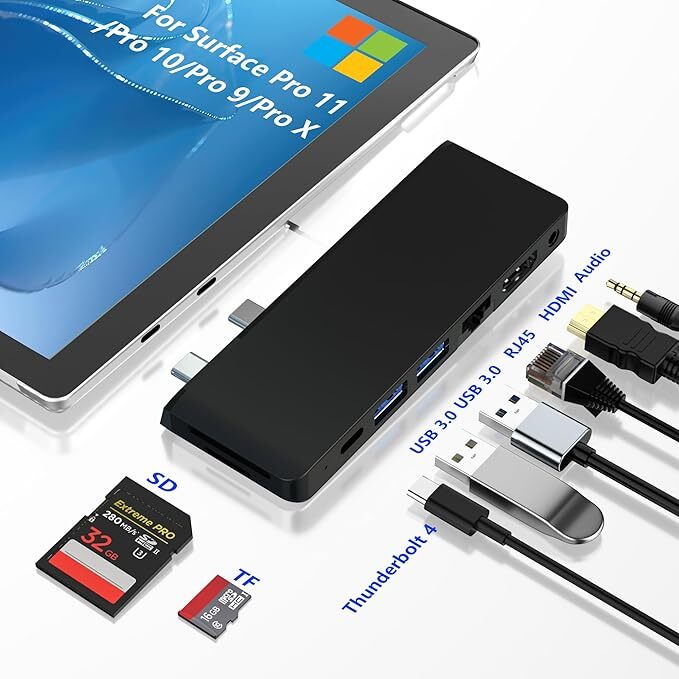 > 782 Surface Pro 9/10/11 ハブ 4K HDMI、USB-C Thunderbolt 4 100M LAN、2xUSB3.0 サーフェス Pro 11/10/9ドッキングステーション