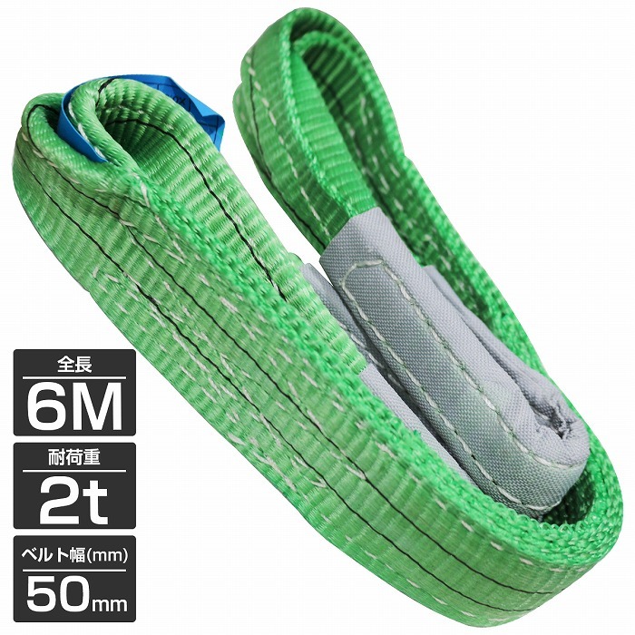 - [1本/耐荷2t/長さ6m] スリング ベルト 吊上げ ナイロン クレーン ロープ 荷吊り 玉掛け 牽引 運搬 2000kg 2トン 幅50mm