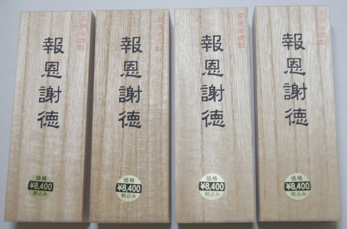 - 書道用墨 固型墨 枯墨 菜種油煙墨「報恩謝徳」 3丁型4丁セット 墨 固形墨 美術品 新品未使用