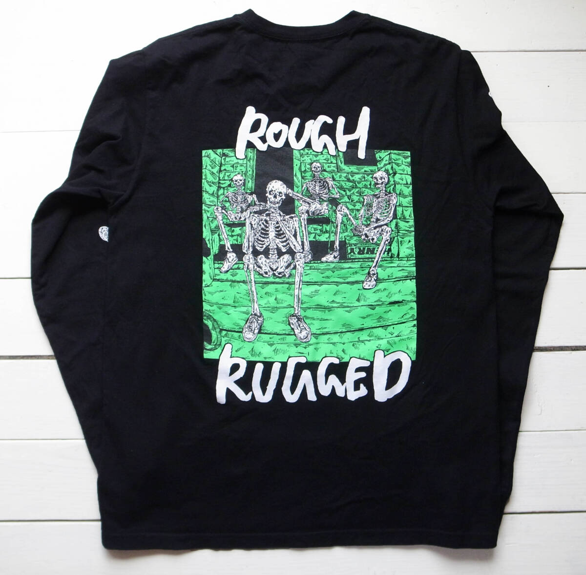 > ROUGH AND RUGGED × HIROTTON ラフアンドラゲッド × ヒロットン スカル両袖プリント ロングスリーブTシャツ 黒 L ロンT