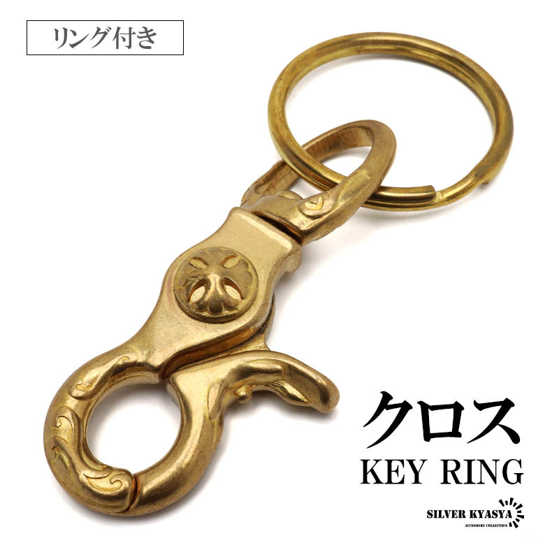 - クロスキーリング 唐草キーリング キーホルダー キーフック クリップ キーチェーン ゴールド ベルトループ マット 鍵 小物