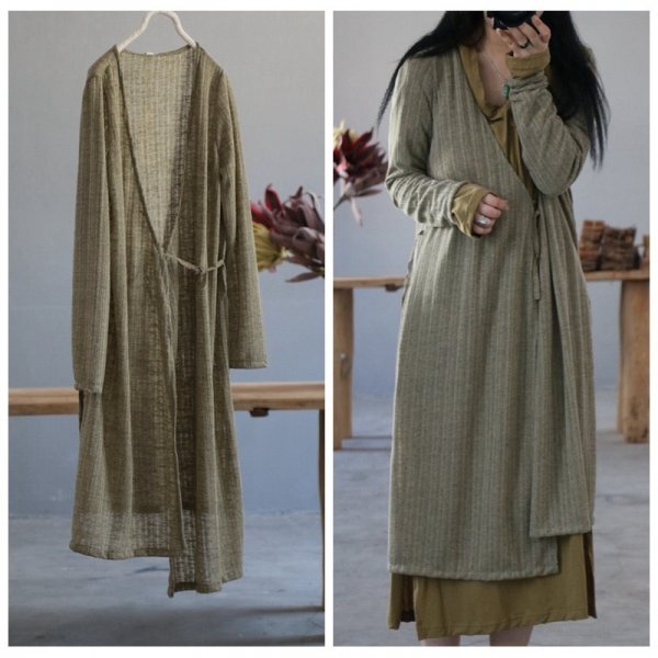 - jm カーディガン 羽織物 アウター アンティーク風 ロマンファッション ゆったり 綿混 グリーン