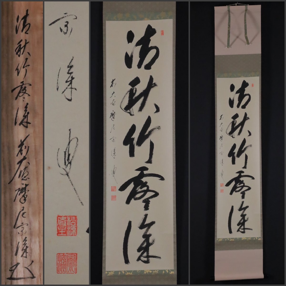 - 【模写】吉】12115 矢野一甫 書「清秋竹露深」 共箱 臨済宗 大徳寺派 蔵雲寺住職 前大徳 仏教 書 茶掛け 茶道具 掛軸 掛け軸 骨董品