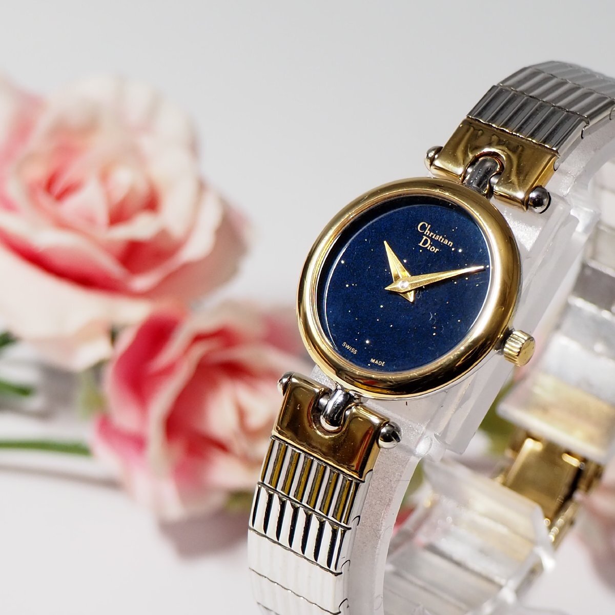 ★★★★ クリスチャンディオール DIOR ラメ文字盤 レディース 腕時計 ゴールド・シルバー F566 中古★★★★