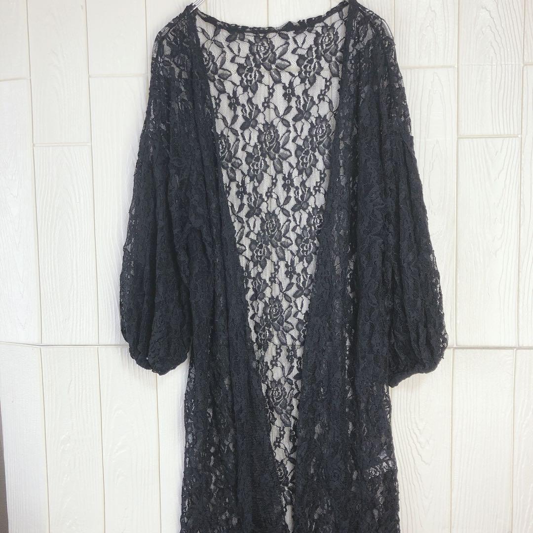 - 黒いロングレースカーディガン 37cm肩幅 92cm着丈