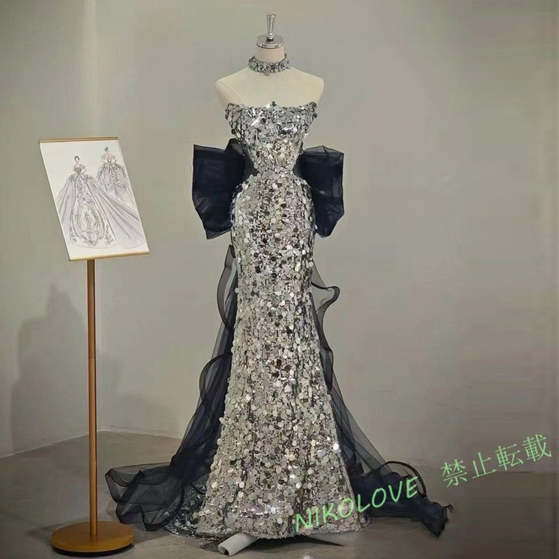 > ☆新品 ウエディングドレス カラードレス ピカピカ 花嫁 結婚式 披露宴 パーティー 演奏会 発表会 ステージ MK566