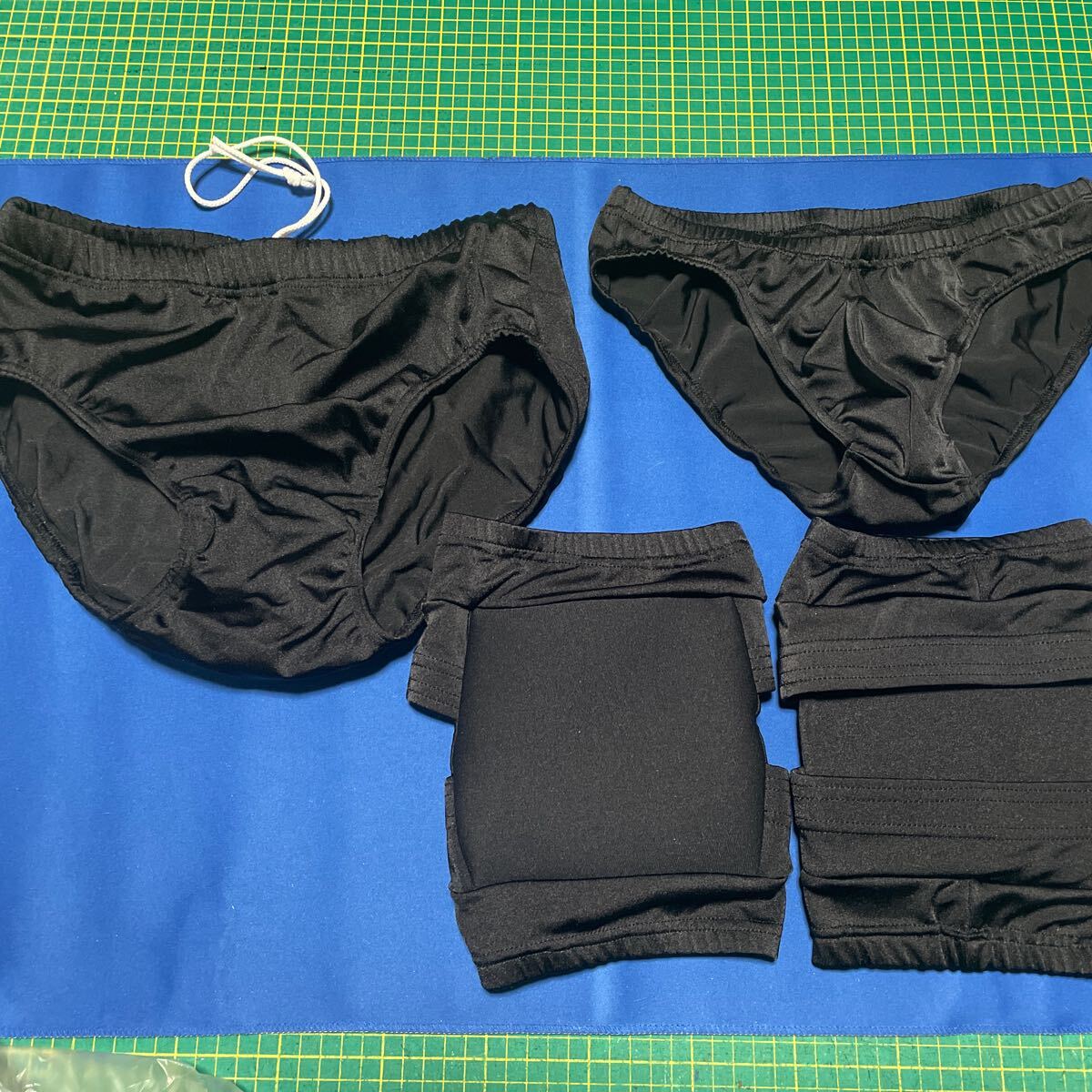 - XL黒色プロレス3点セット ショートタイツ アンダーパンツ ニーパット XL3点セット 試合用セット 水着