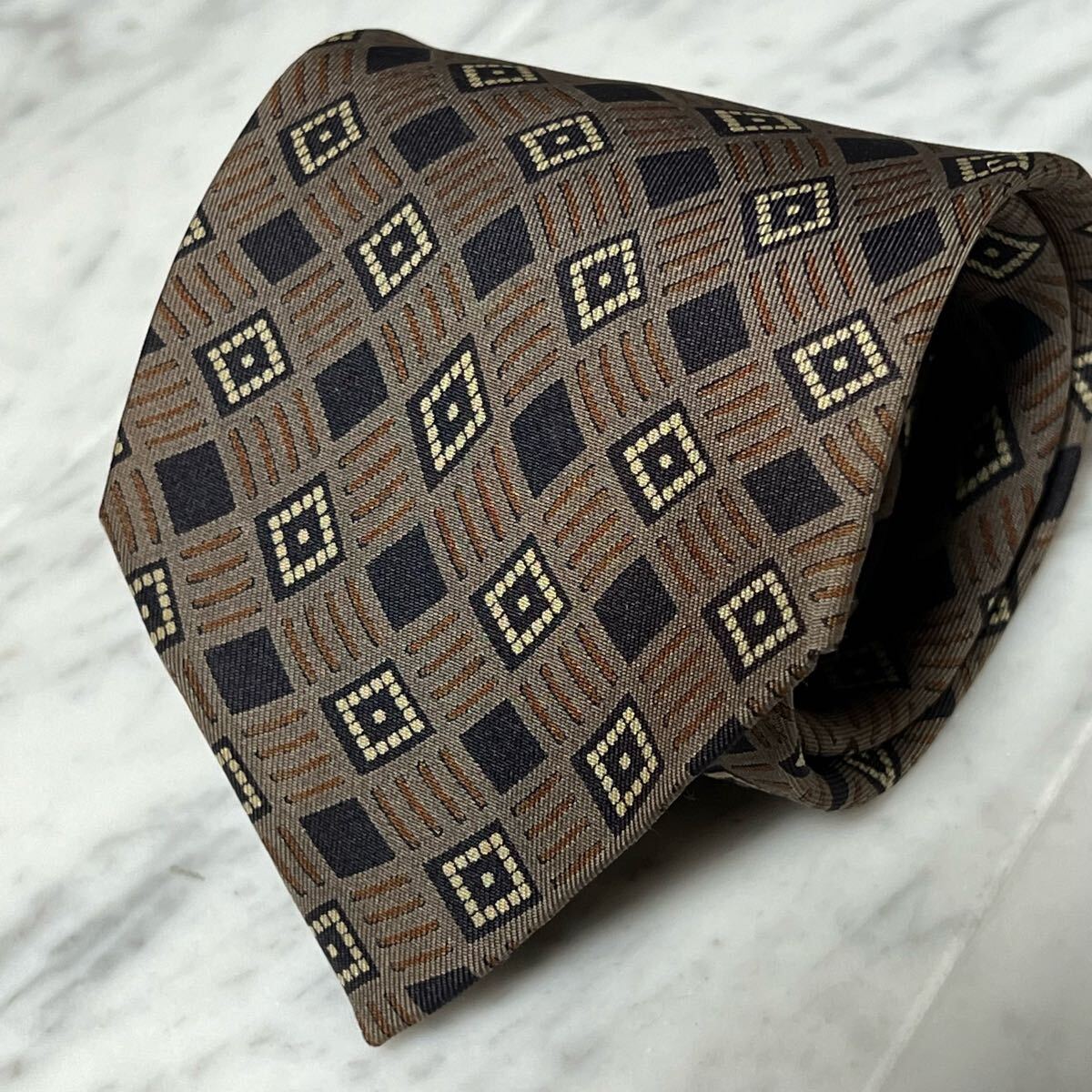 - 500円~ ヨシエイナバ ネクタイ ブラウン ネイビー 小紋 (GREEN B4)