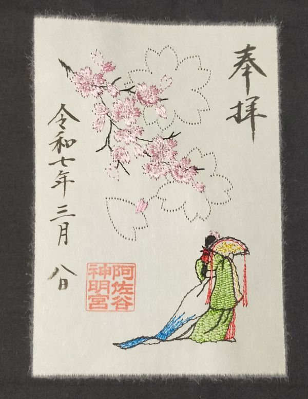 - ♭◆阿佐ヶ谷神明宮(東京・杉並・阿佐ヶ谷)◆大和がさね(刺しゅう入)御朱印 桜の特別御朱印 巫女舞 令和7年(2025年)3月