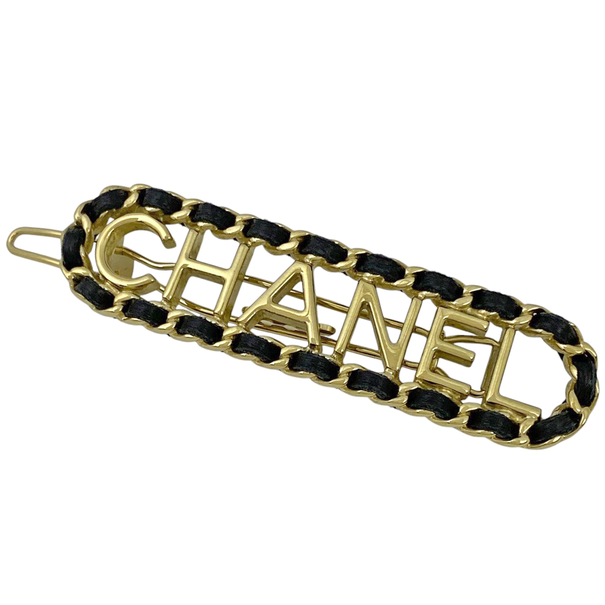 - シャネル CHANEL ロゴ バレッタ 髪留め 髪飾り ヘアクリップ バレッタ GP レザー ゴールド ブラック レディース 【中古】