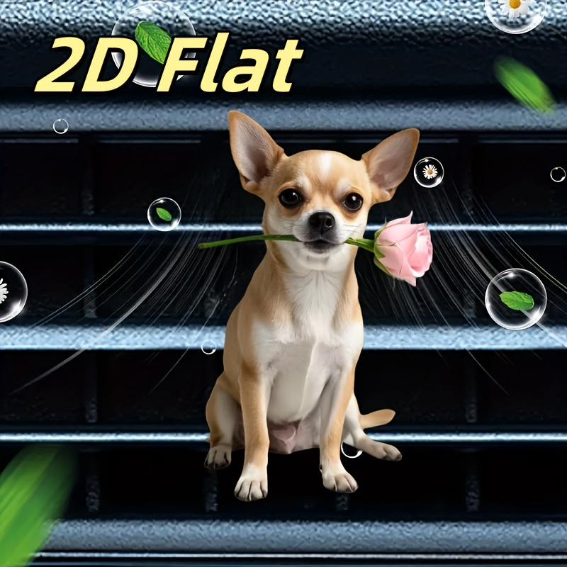 > 車用 芳香剤 エアコン チワワ ベージュ イヌ 6cm 吹き出し口 香り付き バラを咥えた犬 クリップ アクリル 平面 2D おしゃれ いぬ t5368
