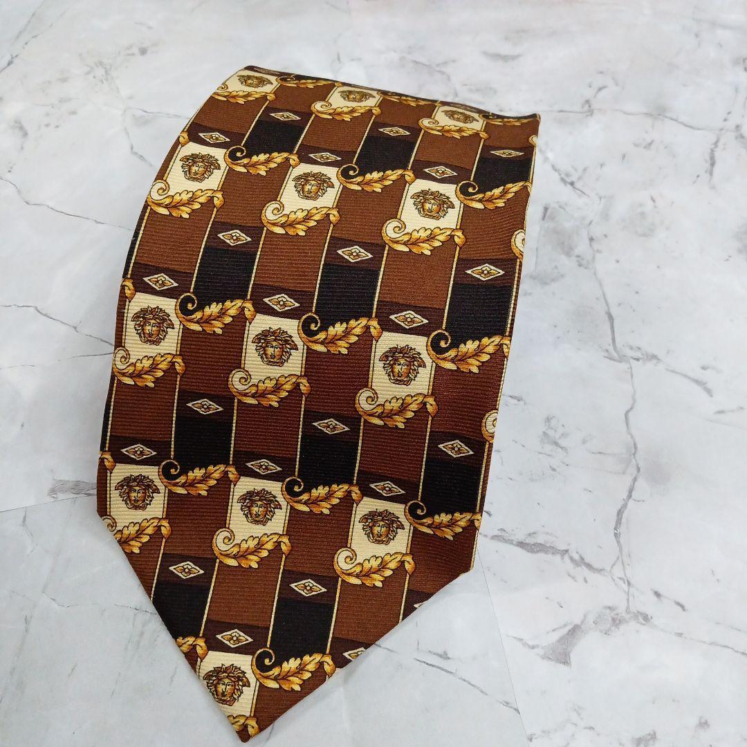 - ジャンニ・ヴェルサーチェ ネクタイ 茶色基調 バロック柄 絹100%【n754】
