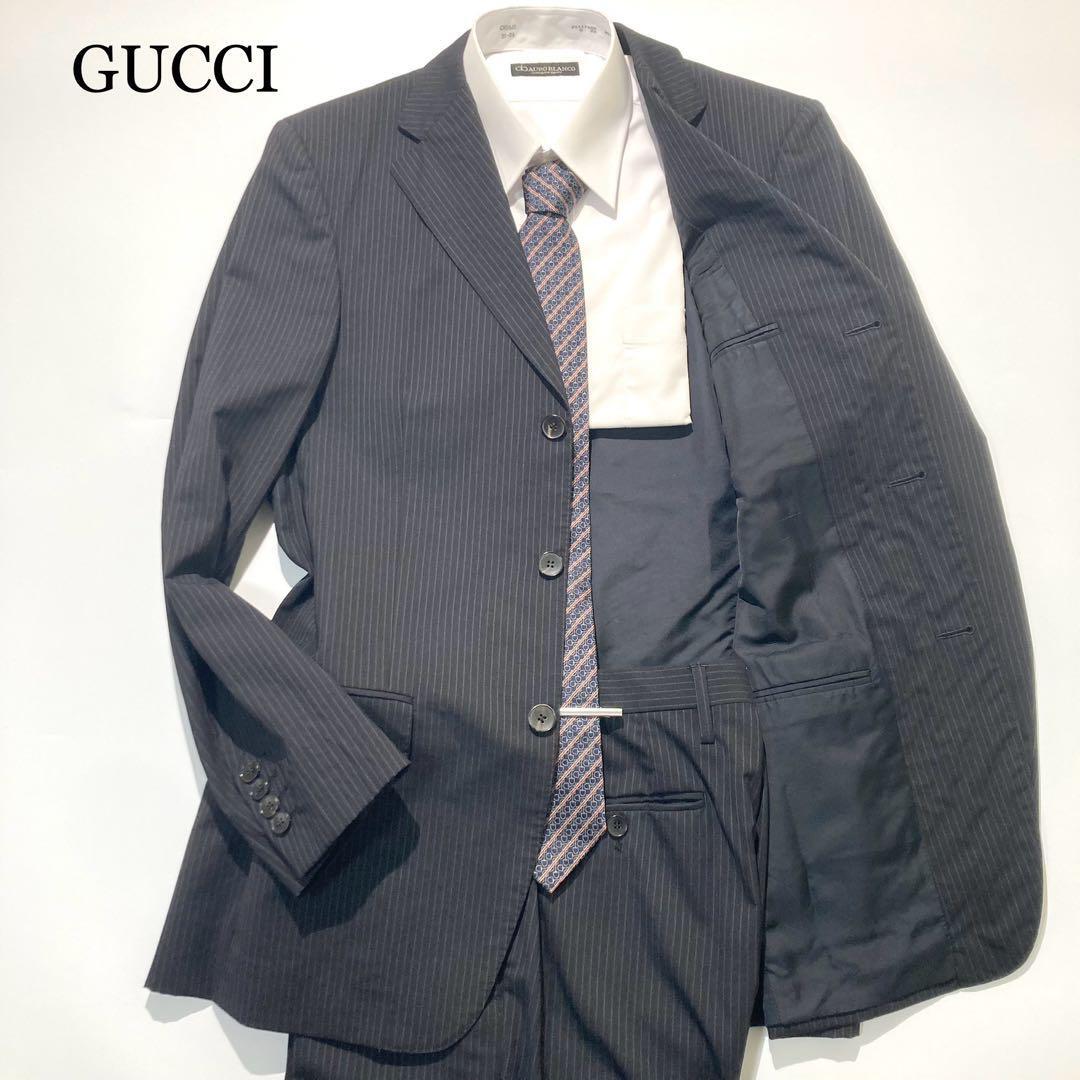 - 【極美品】GUCCI スーツ セットアップ ブラック ストライプ 総裏 46