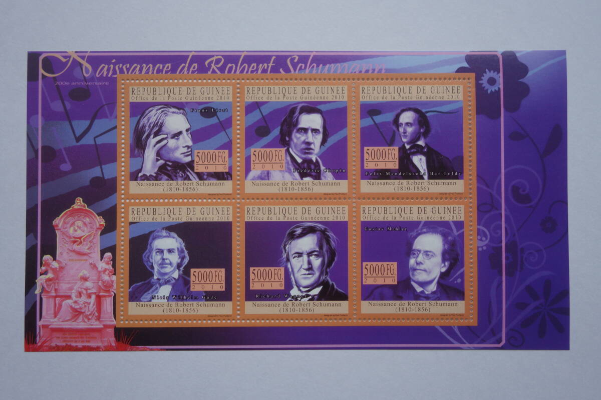 - 外国切手: ギニア切手 「ロベルト・シューマン誕生200年」 6種m/s 未使用