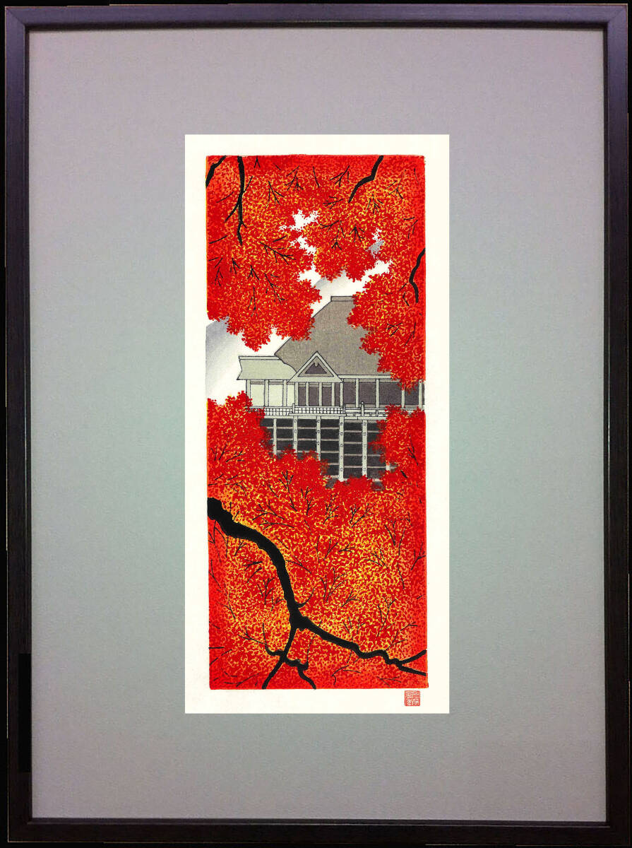 - 真作保証 額装 加藤晃秀 木版画 No.32 秋景清水寺 ポストモダンの香り漂う 京都をこよなく愛した作家の京都の四季