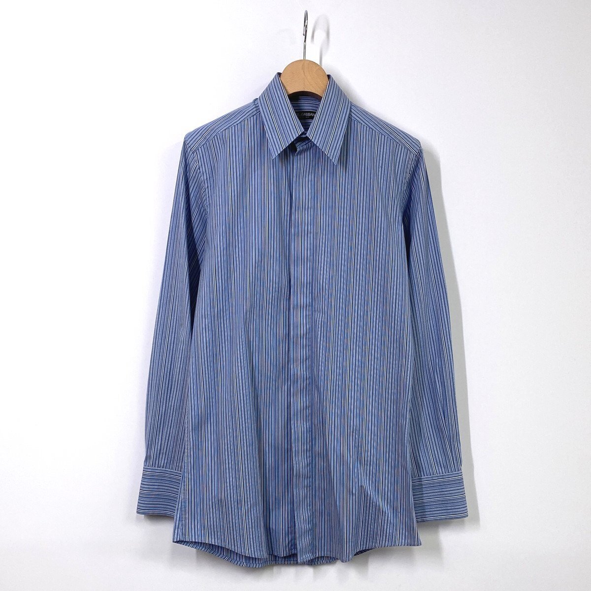 - 【国内正規品】DOLCE&GABBANA ドルチェ&ガッバーナ 長袖 ストライプ シャツ 37 14.5 ブルー 青 ドルガバ DA5115