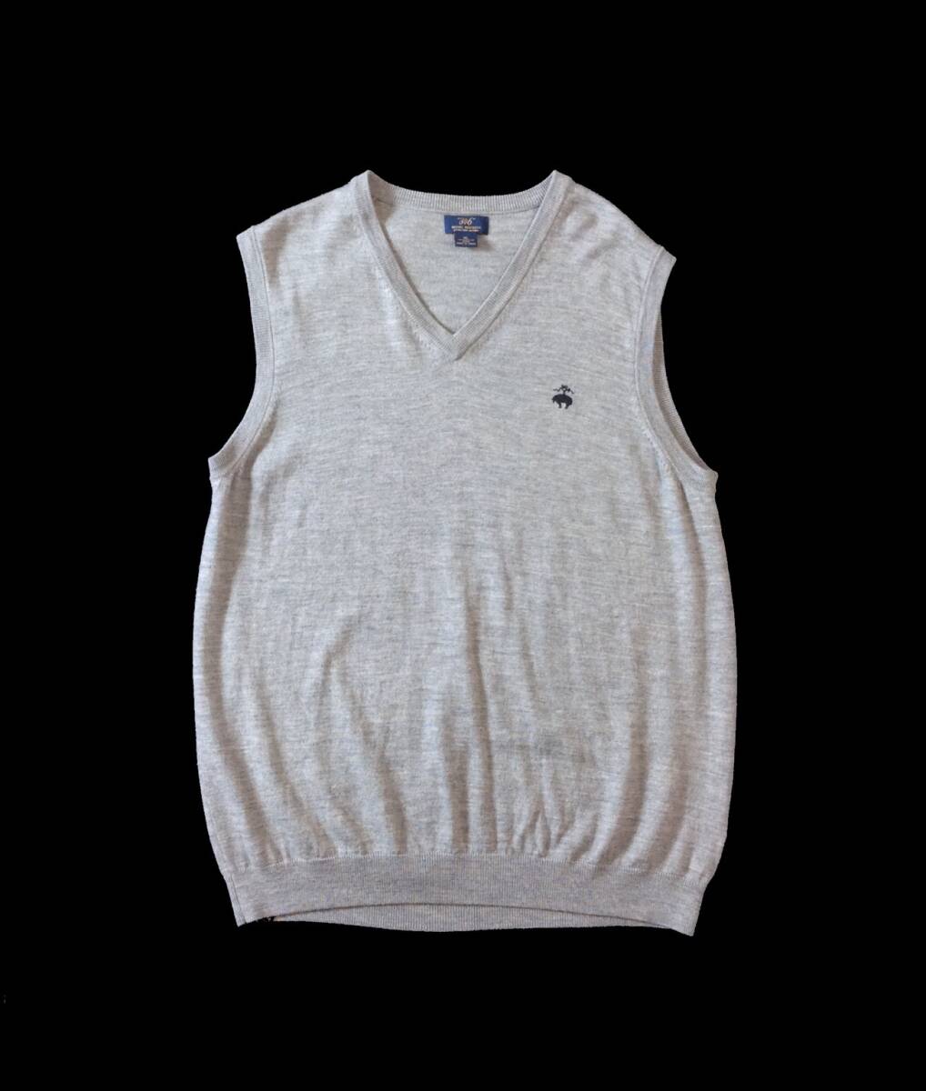 - 346 Brooks Brothers ブルックスブラザーズ ニットベスト メリノウール 刺繍ワンポイント ベスト グレー メンズ XL
