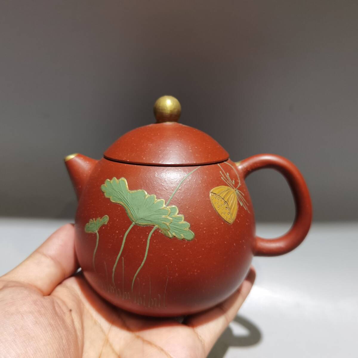 - ▽鴻▽ 茶具 紫砂壺 描金龍蛋壺 大紅袍 顧景舟款 茶壺 酒壺 急須 茶道具 茶道品