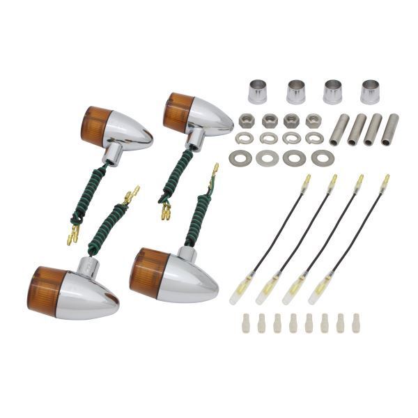 > SR500(1985-1998) 用 クラシカル 砲弾タイプ ウインカーKIT メッキボディ/オレンジレンズ|ポッシュフェイス/POSH