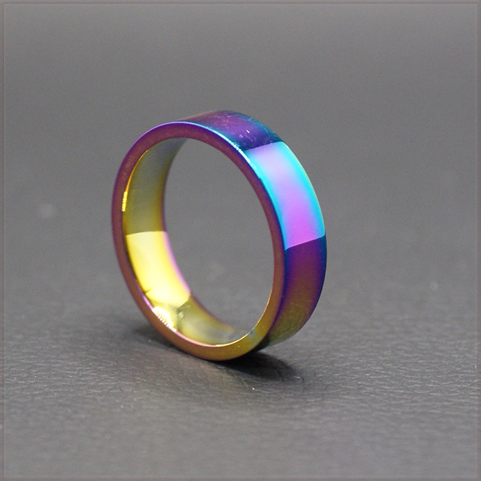 - [RING] Titanium Rainbow Ring チタン ヒート グラデーション レインボー 6mm フラット 平打内甲丸 リング 19号 (5.2g)