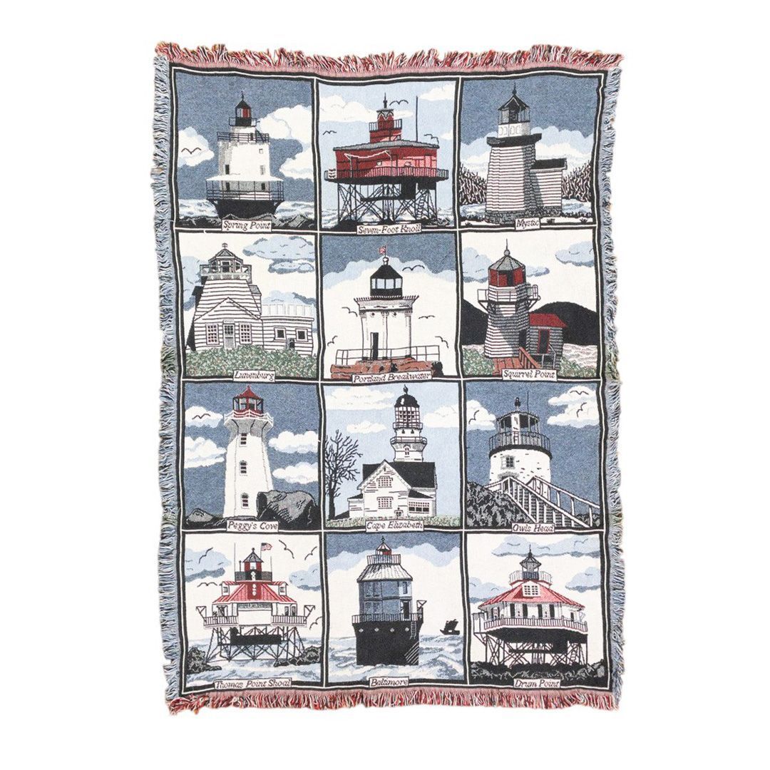- vintageラグ カーペット USA製 灯台 ライトハウス 海 1160