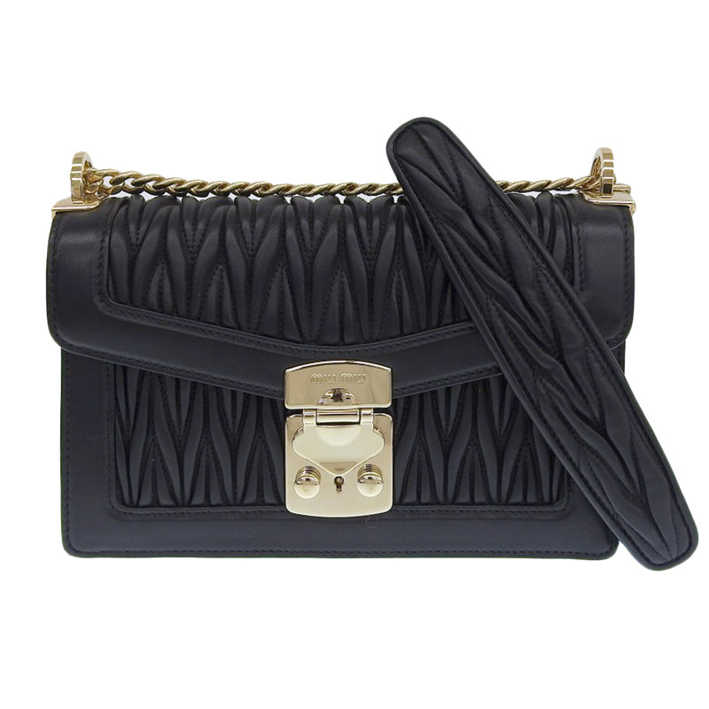 - ミュウミュウ MIUMIU マテラッセ ショルダーバッグ チェーンショルダー レザー ブラック 5BD083 中古 新入荷 OB2325