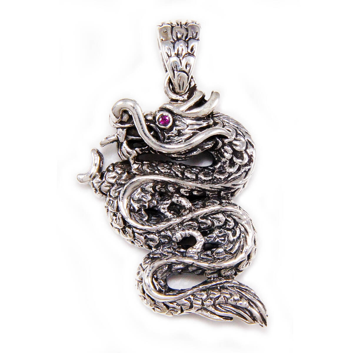 - ドラゴン 竜 ルビージルコニア 925シルバー ペンダント 925刻印あり SA-054S