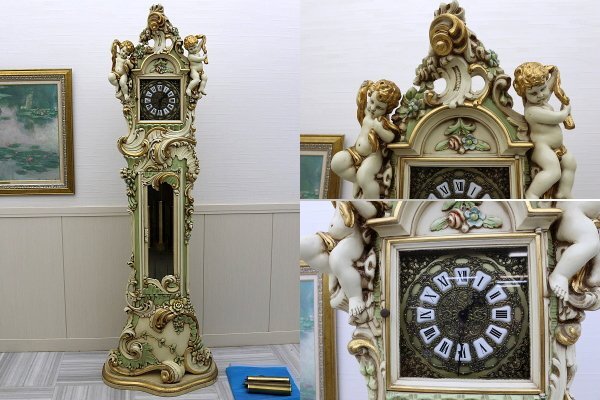 > 希少!MarioColciagoマリオコルチャゴ HERMLE アンティーク ホールクロック 時計 イタリア製 手掘り彫刻 ロココ調検:シリックSilik