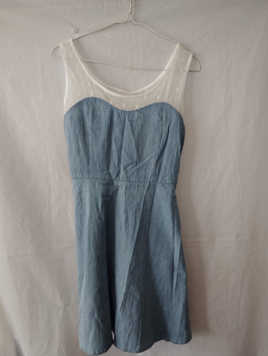 - デニムブルーのハート型デザインワンピース デニム