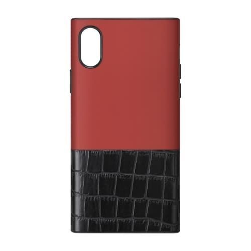 > 【新品未使用】iPhoneX/iPhoneXs用PUレザーケース クロコダイル調/レッド 家電 m0323-26-1