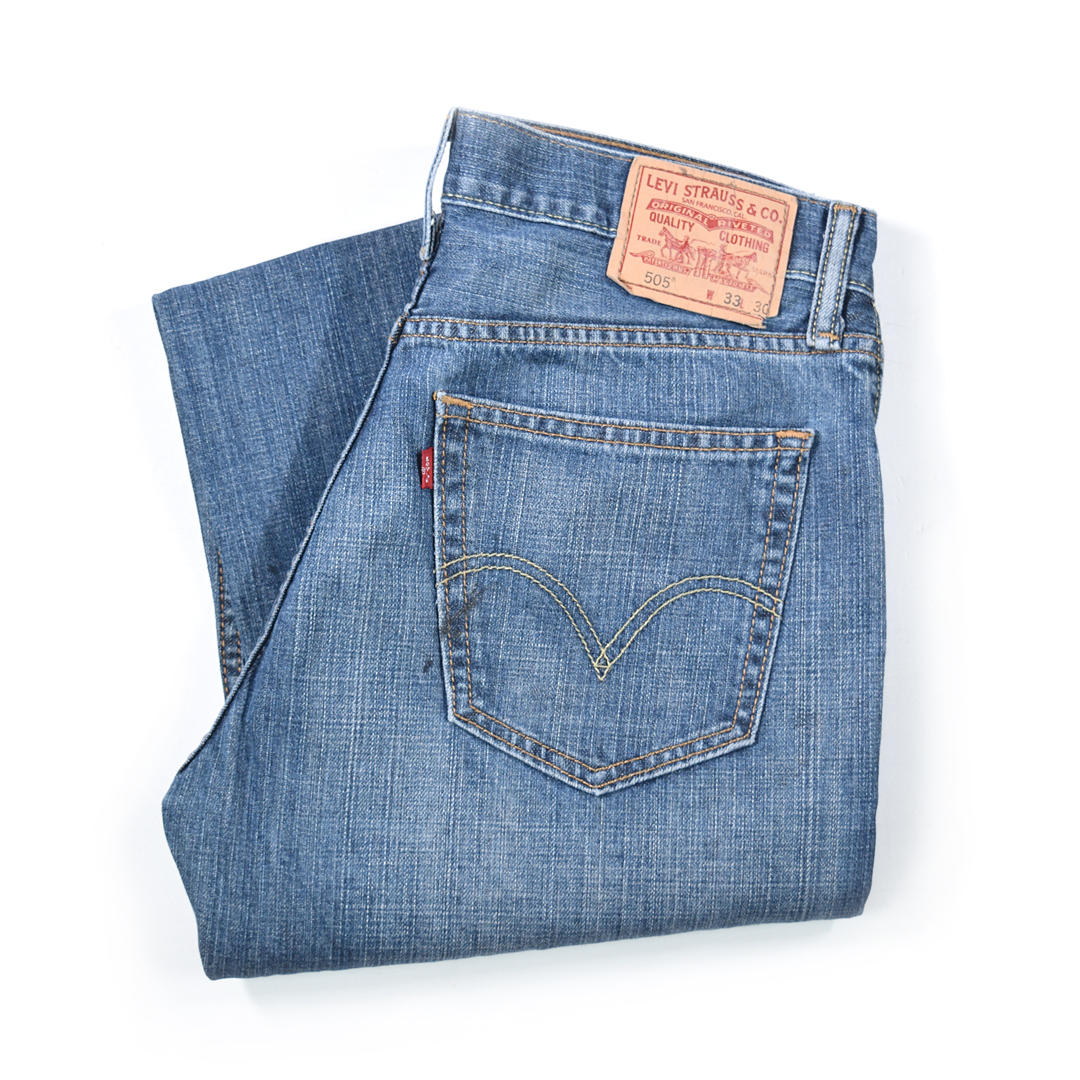 - 【送料無料】リーバイス 505 雰囲気系 ストレート ジーンズ デニムパンツ ブルー ストレッチ W34相当 Levis ジーパン 古着 @EA9123