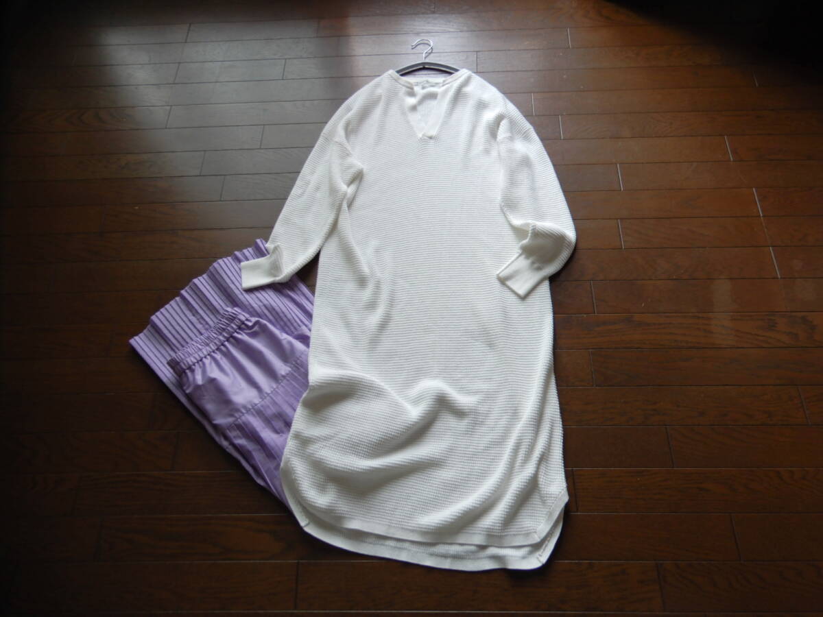 - 【23区/サイズ38】洗える 白キーネック大人可愛いマキシ丈長袖コットンブレンドカットソーロングワンピース