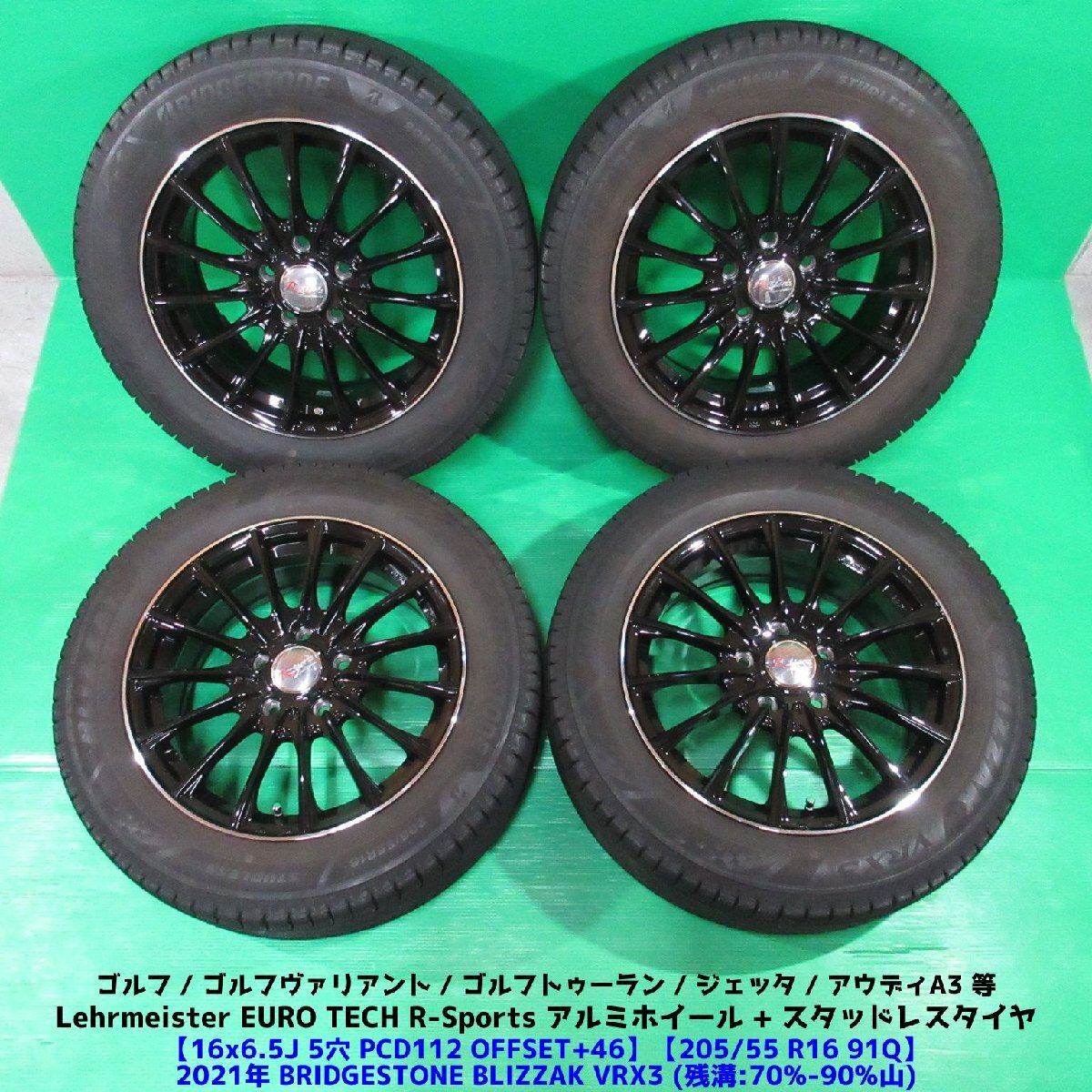 > ゴルフ 205/55R16 スタッドレス 70%-90%山 BRIDGESTONE BLIZZAK VRX3 4本 5穴PCD112 6.5J +46 ゴルフトゥーラン アウディA3 中古新潟