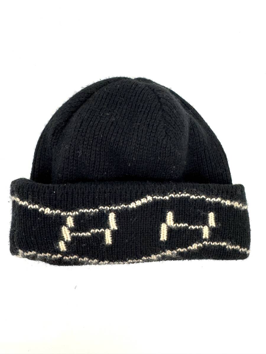 > 7C2302【本物保証】エルメス マルジェラ期 ニット帽 キャップ 帽子 カシミヤ 100% ブラック ベージュ H ロゴ HERMES