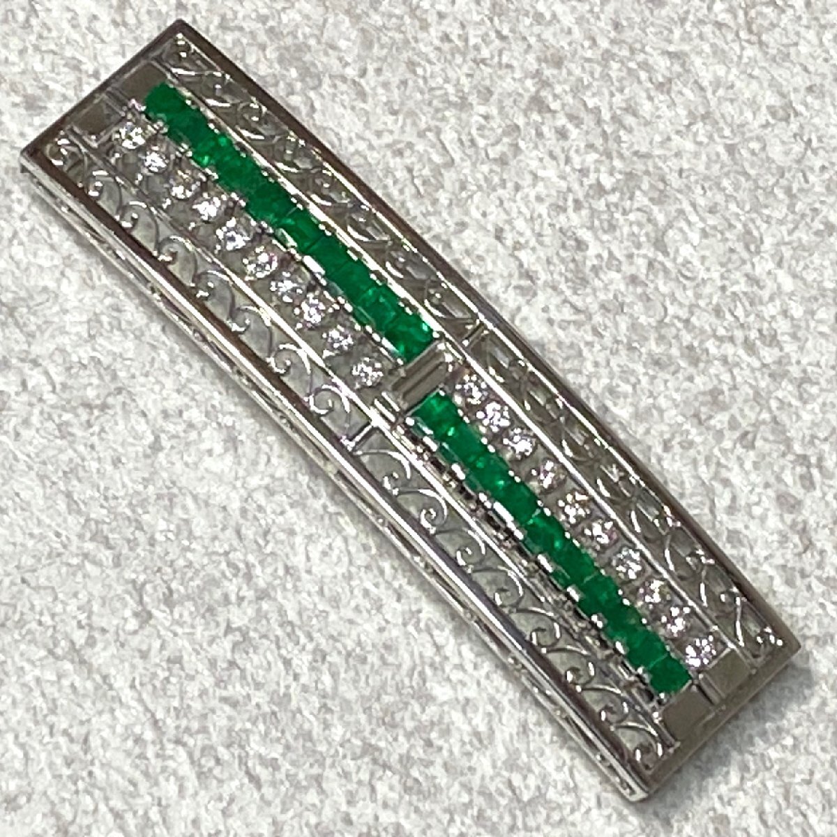 - ☆Pt850(プラチナ)エメラルド2.12ct/ダイヤモンド0.70ct 和装小物/高級帯留 重量約17.7g 鑑別書付き 管理No402