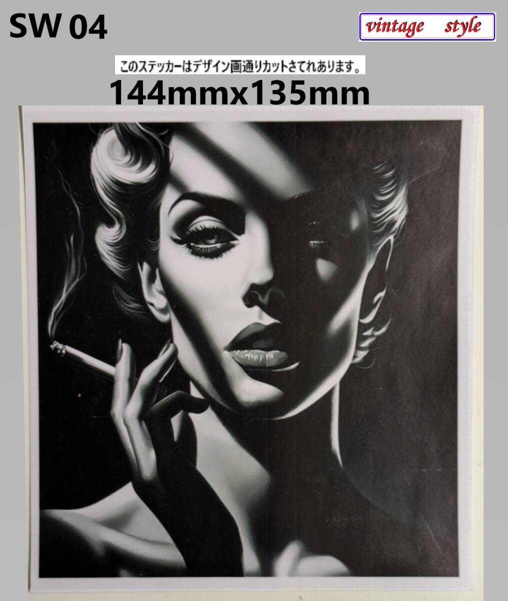 - SW04-02 特価 モノクロ タバコ 喫煙 美人 セクシー&クール アート 顔上半身 ヴィンテージスタイル レトロ セクシーステッカー ギター