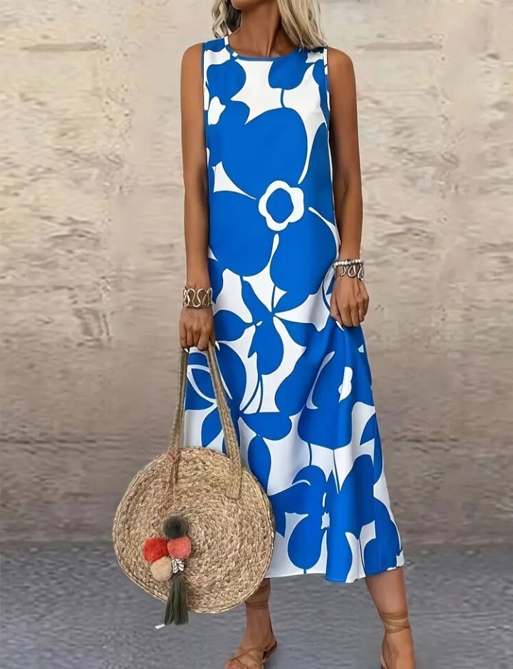 - 新品大きいサイズXLワンピースマキシノースリーブ花柄ブルー系