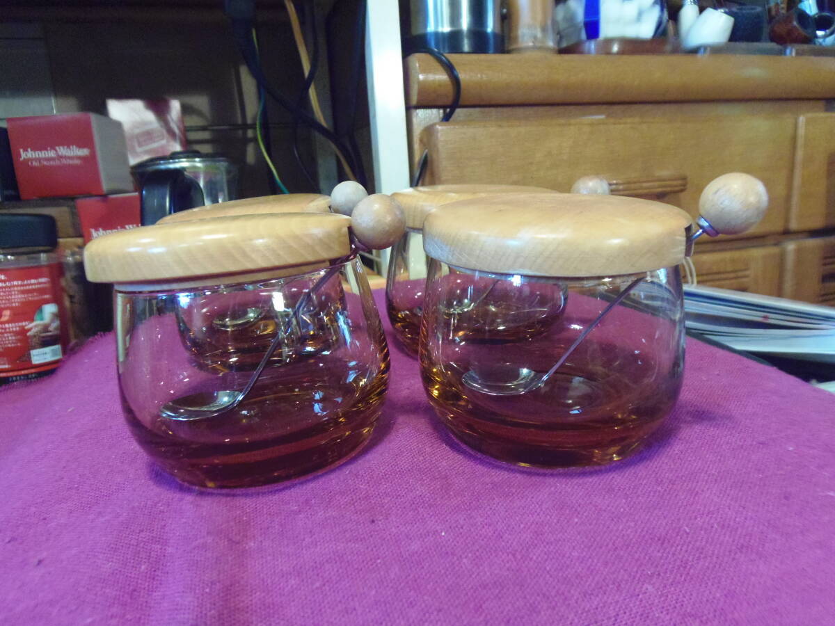 - シュガーポット アンバーガラス 昭和レトロ 4個セット 美品かと思います。123.