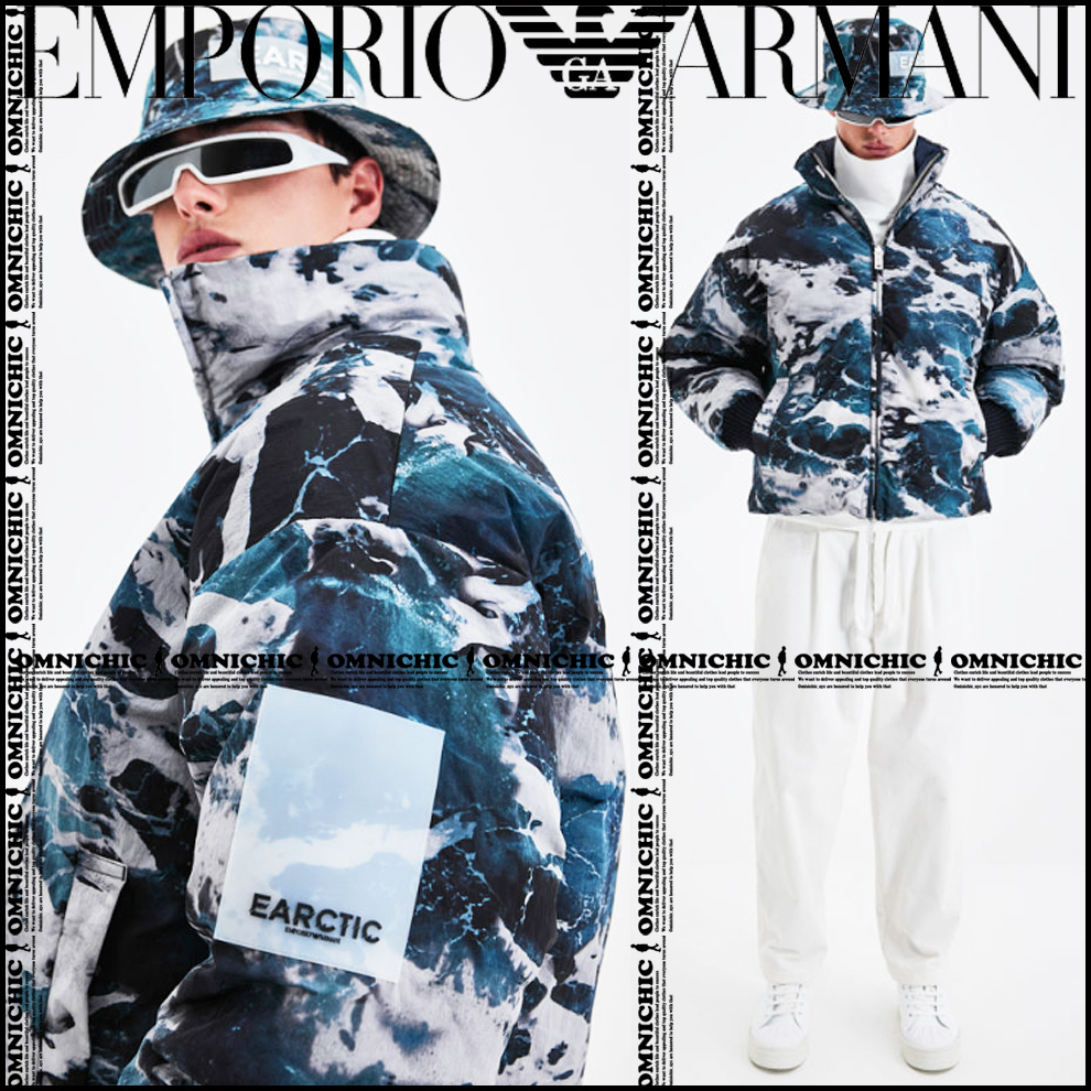 > 正規品■2WAY新品195,800円【EMPORIO ARMANI】エンポリオアルマーニ両A面リバーシブル北極圏デザインビックロゴボンバーダウンジャケット48