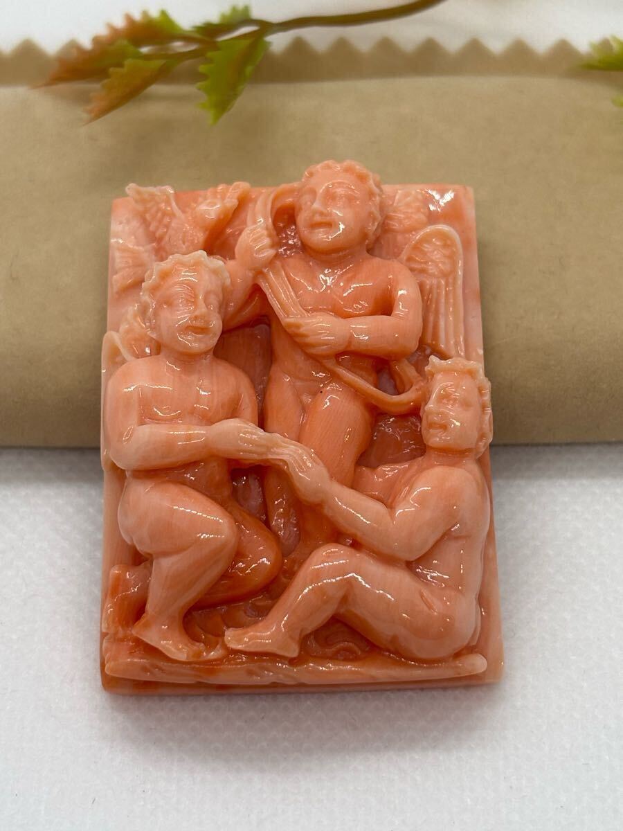 - 天然桃珊瑚 綺麗な手工芸細工美品雕刻ルース 32.44g 新品(s600)
