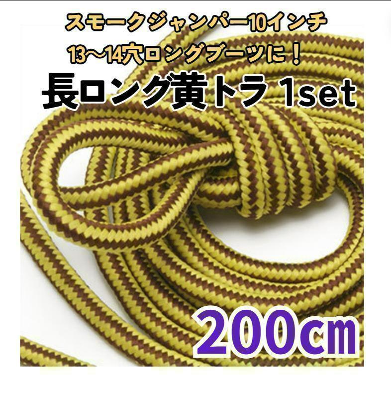 > 10H以上靴紐 2本 200㎝ 黄色トラ メンズ/レディース スモークジャンパー 軍靴 ブーツ マーチン ヴィンテージ